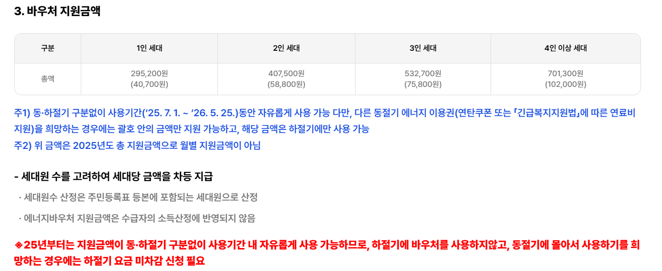 | 세대원 수 | 지원 금액(2025년 기준) |